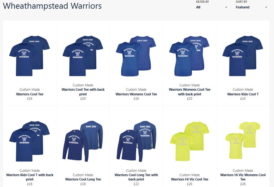 All of our Warriors kit can be purchased on our online shop. We currently have over 35 items available for both adults and children. Hoodies, t-shirts, high viz and hats to name but a few – take your pick!